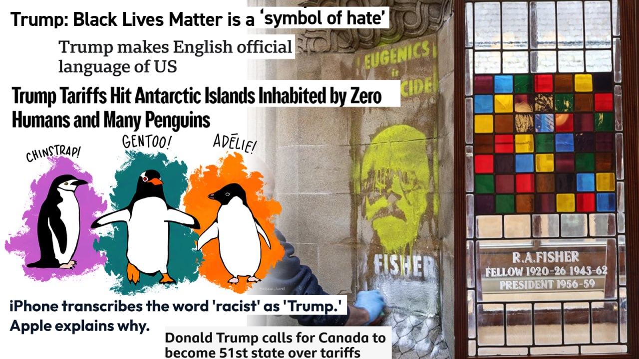 Хэппи-энд? Подождите расходиться! Последние годы произошло падение рейтинга одобрения великого биостатистика. Многие ученые считают использование ирисов этически недопустимым. Почему? Главная причина: Фишер — евгеник. К примеру, статья о LDA была опубликована им в «Annals of eugenics» (сейчас журнал переименовали, но осадочек остался). Фишер умер в 1962 г. и до последних лет говорил всякие евгенические гадости. В 2020 г. на волне протестов в США, связанных с гибелью Джорджа Флойда, в Кембридже демонтировали витраж с «латинским квадратом», который прославлял ученого. Другие организации удалили его имя из названий престижных наград математикам и эволюционистам. В общем, Роня, у нас отмена 🥲